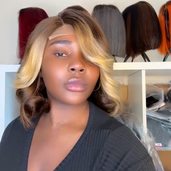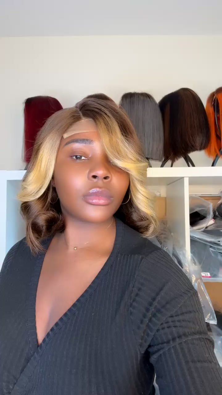 12 inches Brown bob with bling highlight in the front 200 density. 5x5 closure