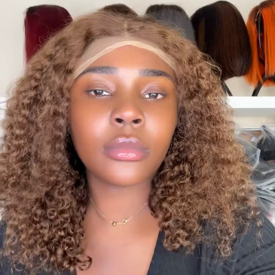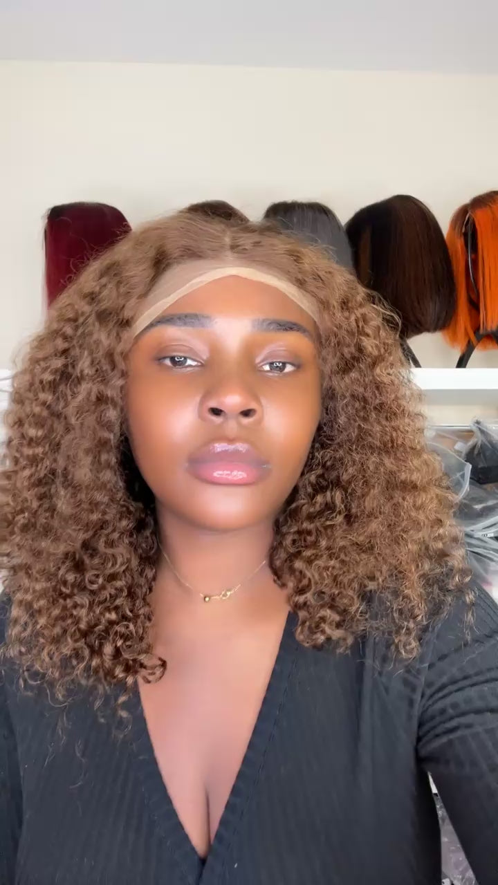 20 inches light brown curly, Pixie curl, 200 density 13x4 frontal, 100% human hair, transparent closure
